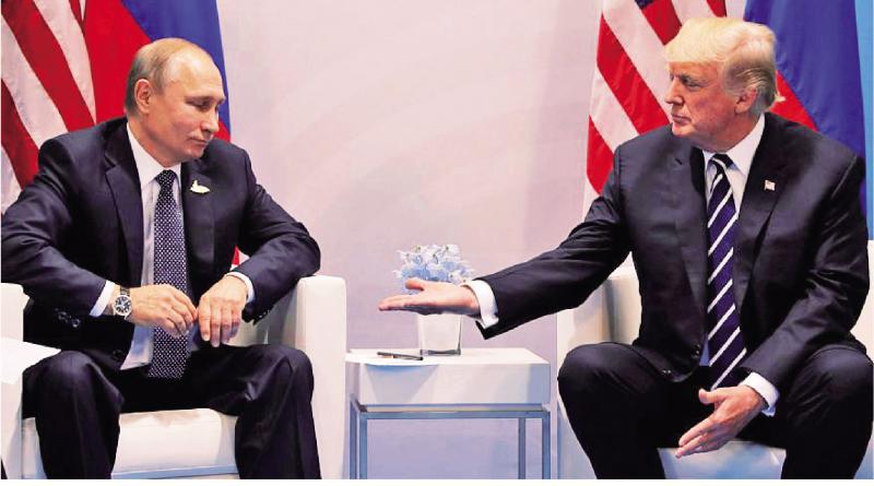 圖:去年七月,俄羅斯總統普京(左)與美國總統特朗普在德國漢堡舉行的G20峰會上首次會面