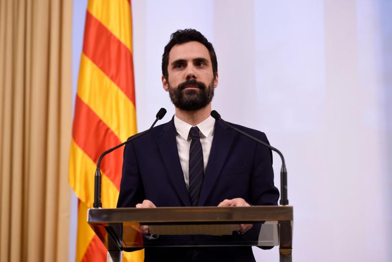 圖:加泰議會新任議長托倫特26日出席新聞發布會\法新社