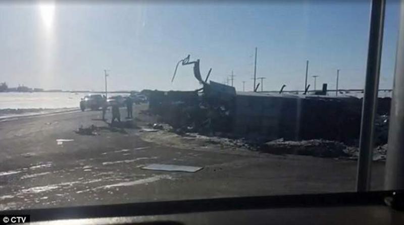 圖:加拿大薩斯喀徹溫省6日發生巴士與貨車相撞事故,造成28死傷\網上圖片