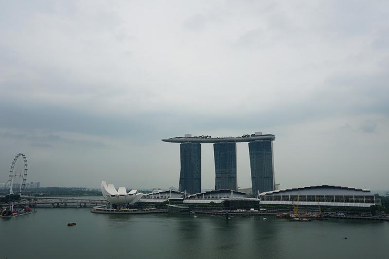 圖:新加坡河另一側的濱海灣金沙酒店成為新的地標\趙宇喬攝