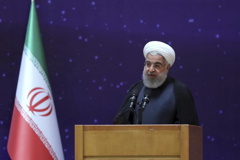 圖:伊朗總統魯哈尼9日在德黑蘭發表講話,促美遵守伊核協議\美聯社