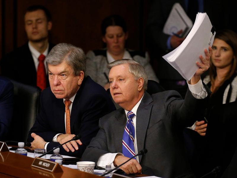 圖:參加問詢會的議員手拿數十頁材料向朱克伯格提問 路透社