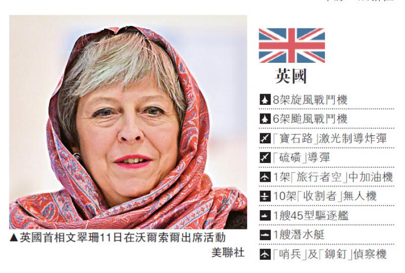 雖然聲明沒有透露採取軍事行動的細節,但有消息人士指,英國將改變以往僅承擔聲援的角色,此次將真正參戰,會和美聯手展開軍事行動。文翠珊也準備繞過國會,在沒有徵得議會同意的情況下向敘利亞動武。