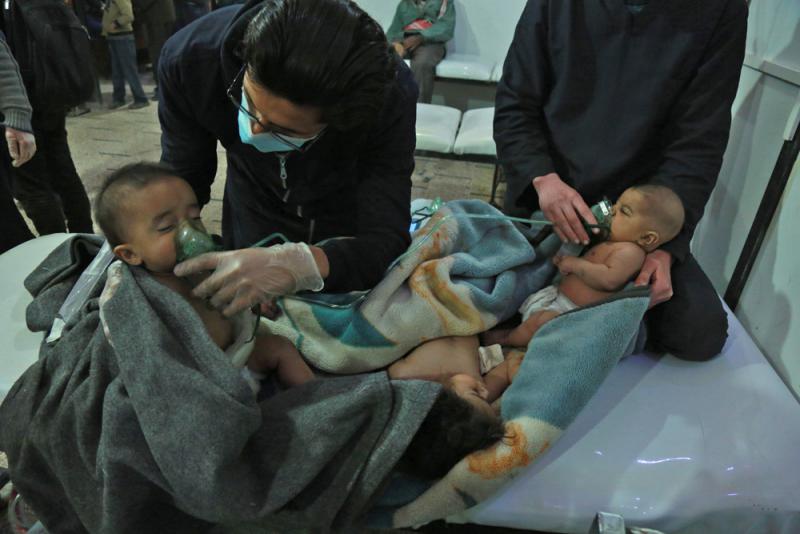 资料图:叙利亚2月25日遭受化武攻击,受伤小童接受治疗 法新社