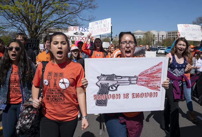 圖:美國學生20日遊行至國會外,敦促政府落實槍管政策 美聯社