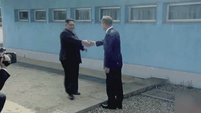 朝韓兩國最高領導人的手又握在了一起!香港時間4月27日上午8時30分,朝鮮最高領導人金正恩來到板門店朝韓軍事分界線,與等候在此的韓國總統文在寅握手。金正恩先與文在寅隔着軍事分界線握手,然後跨過軍事分界線到韓方一側,隨後兩人手牽手再跨過軍事分界線,到朝方一側的土地停留片刻。