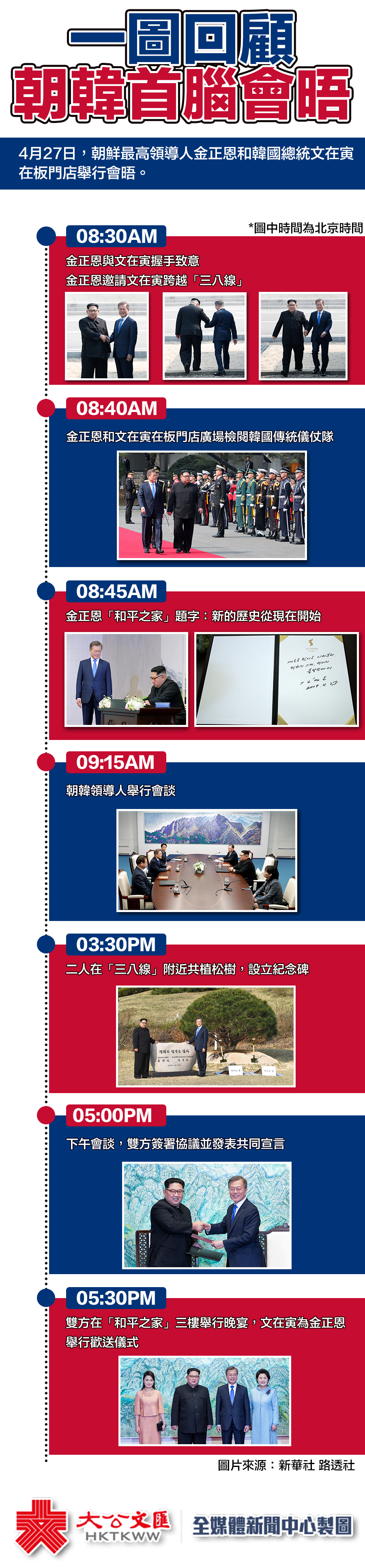 大公文匯全媒體報道: 韓國總統文在寅和朝鮮最高領導人金正恩27日在板門店會晤。這是繼朝鮮戰爭後,朝鮮最高領導人首次踏上韓國土地。兩位領導人今天都有哪些行程?一起來回顧一下吧。