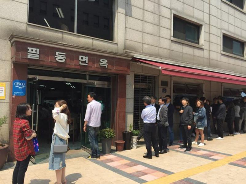 圖:首爾一家朝鮮冷麵店排起長隊 網上圖片