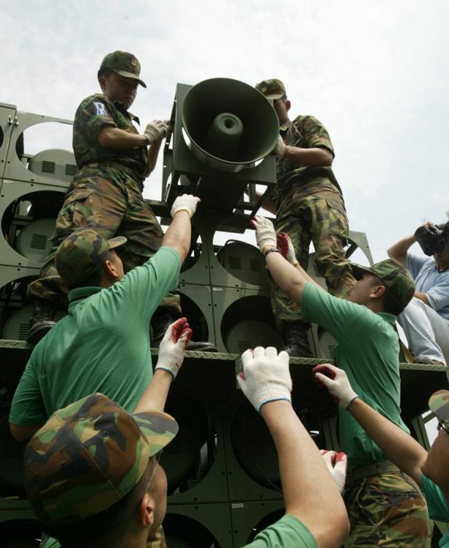圖:韓國士兵運送心理戰喊話的設備\韓聯社