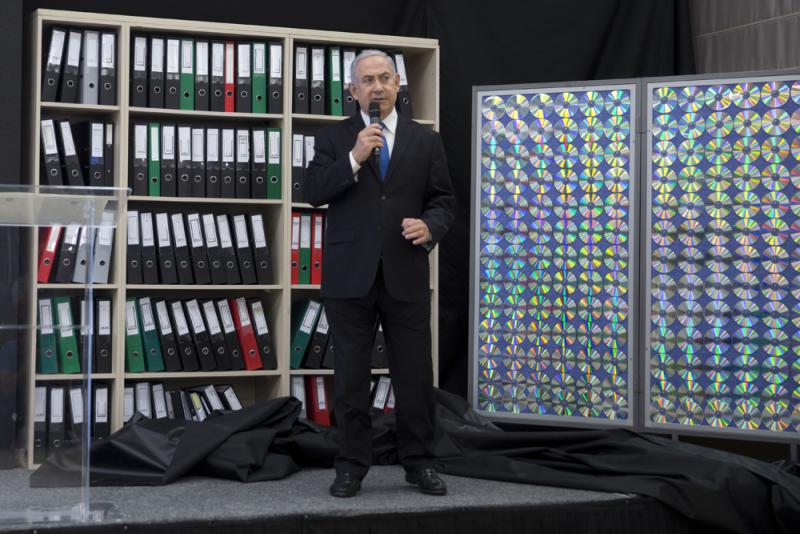 當天,內氏在以色列電視台黃金時段進行演說,他說,以色列近期在一次「偉大的情報成就」中獲得數以千萬計的文件,材料重達半噸。這些文件在2017年被移到一個外部看起來很破敗的秘密地點。他還在現場展示據稱5.5萬頁紙張和185張CD儲存的情報。明顯針對美國國內的觀眾的內氏,大部分時間用英語進行演說。