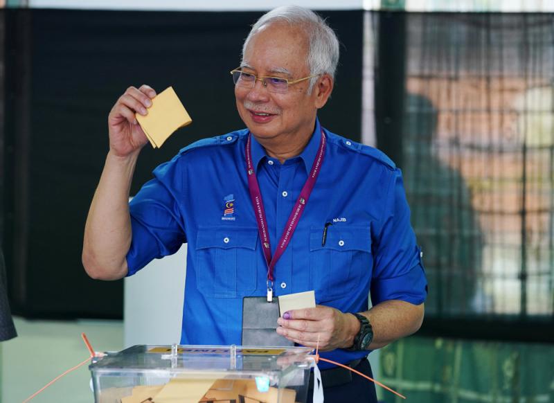 圖:馬來西亞現任首相納吉布9日投票\路透社