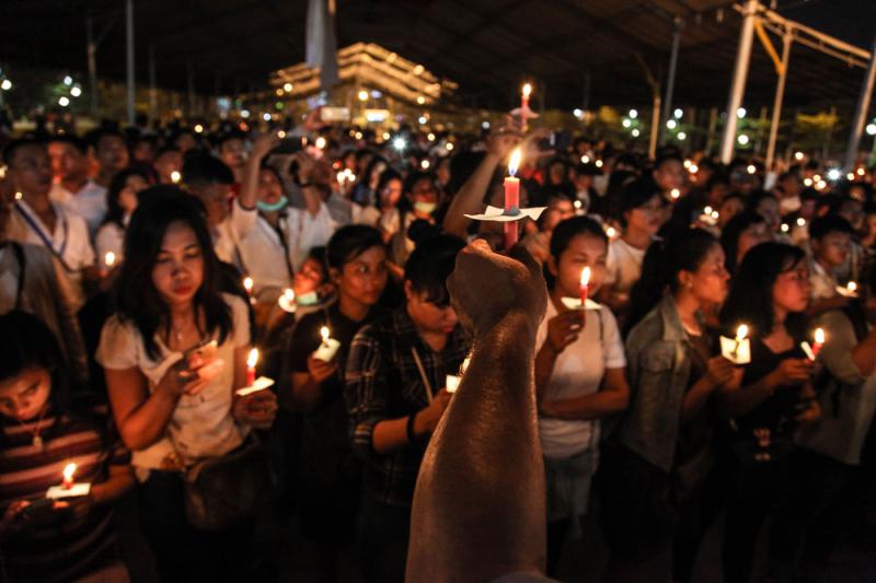 圖:印尼民眾13日為爆炸案罹難者默哀/法新社