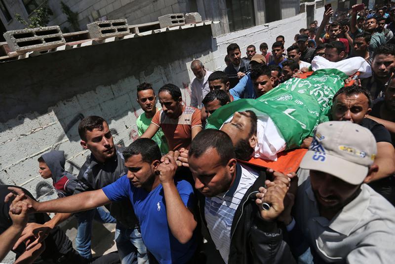 圖:巴勒斯坦人15日為死難者舉行葬禮 /法新社