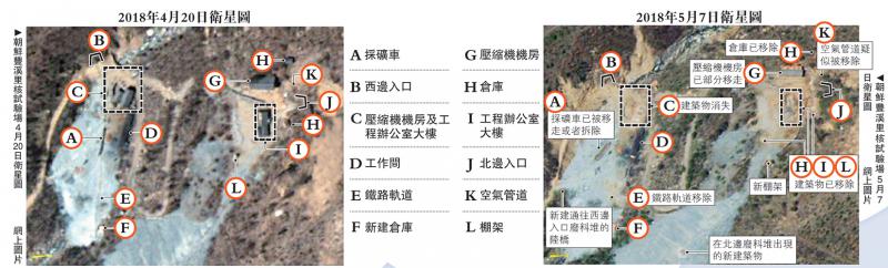 專門檢測朝鮮動向的美國約翰霍普金斯大學研究網站「北緯38度」14日發布最新報告指出,5月7日拍攝的商業衛星圖像顯示,「有確切證據」證實朝鮮已開始拆除豐溪里核試驗場。
