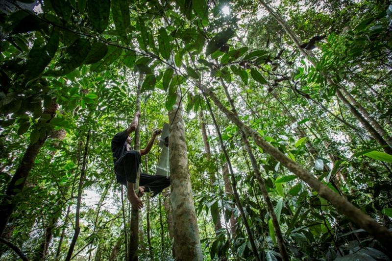 圖:工作人員在雨林中安裝「守護者」/ 網上圖片