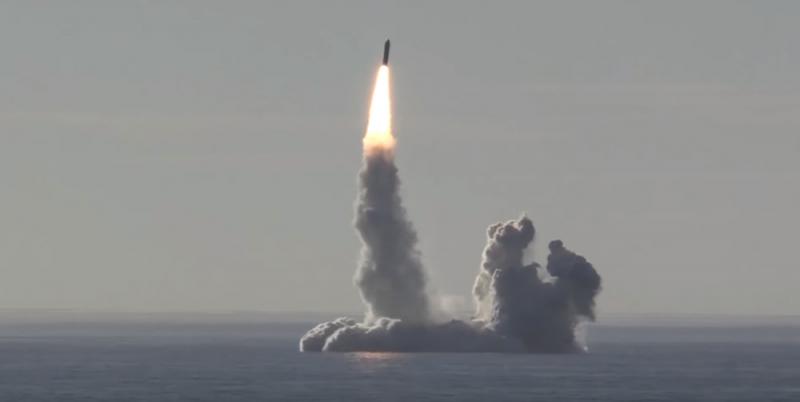 圖:俄羅斯北方艦隊22日發射的首枚布拉瓦導彈 俄國防部
