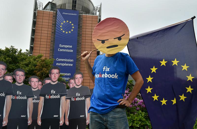 圖:5月22日,Fb行政總裁朱克伯格出席私隱數據保護論壇時,民眾在外抗議活動 法新社
