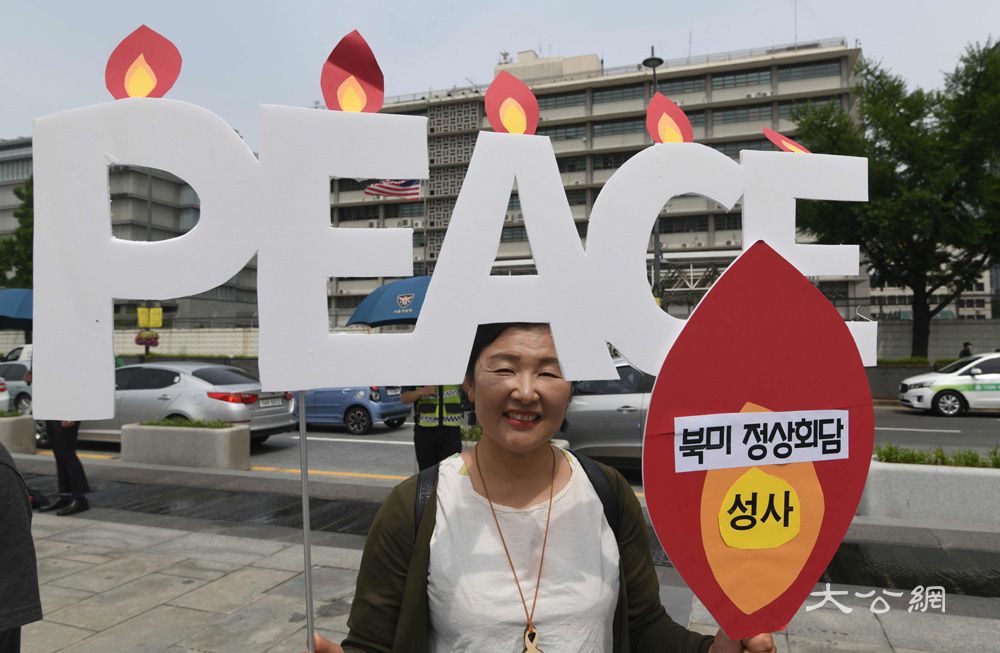 ▲韓國人25日在美國駐首爾大使館前呼籲「和平」法新社