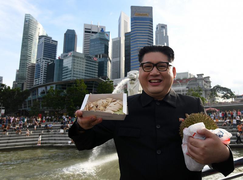 朝鮮領導人「金正恩」27日驚現新加坡濱海灣金沙酒店附近,路人立馬圍觀、爭相與他合照,稍後才發現這位一頭油亮黑髮的大個兒是個「山寨版」。此君實為華裔澳洲籍男子,自稱Howard X,他認為金正恩和特朗普應該會相處融洽,因為兩人性情相似。Howard X還向特朗普喊話:「我已經在新加坡囉,等你來喔。」 路透社