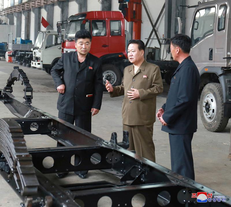 圖:朝鮮高官崔龍海(中)28日視察一家汽車廠 路透社