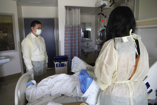 中國駐多倫多代總領事莊耀東(左)等當天趕往醫院看望受傷學生,表達慰問(中新社)