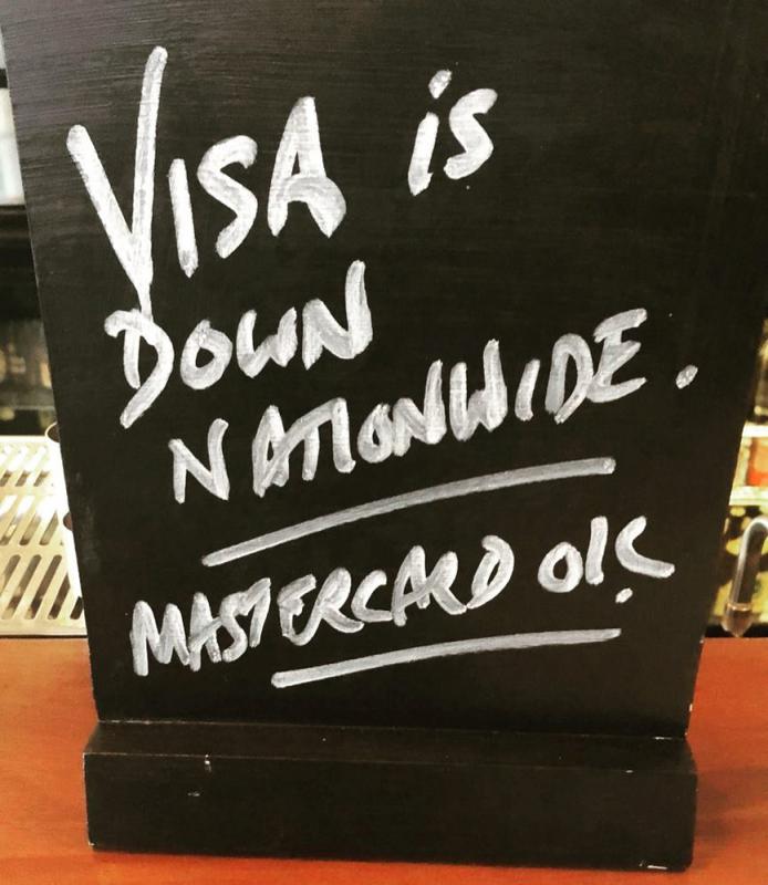 圖:6月1日,英國伊普斯威奇某商店中掛出Visa故障的告示\路透社