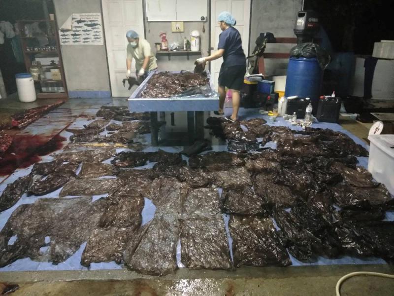 泰國農業大學海洋生物學家探隆那瓦沙瓦稱,這些塑膠袋佔據鯨魚胃部空間,令它無法吃進任何有營養的食物,「若你胃裏有80個塑膠袋,你也會死」。泰國是耗用塑膠袋最多的國家之一,探隆那瓦沙瓦指,泰國海域每年有至少300隻海洋生物吃下塑膠死亡,包括領航鯨、海龜和海豚。