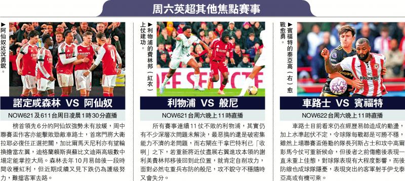 榜首領先6分的阿仙奴強勢未有放緩,周中聯賽盃作客亦能擊敗勁敵車路士,首席門將大衛拉耶必復任正選把關,加比爾馬天尼利亦有望輪換擔當左翼,迪格蘭賴斯與蘇比文迪兩高級數中場定能掌控大局。森林去年10月易帥後一段時間收穫紅利,但近期成績又見下跌仍為護級努力,難擋客軍去路。