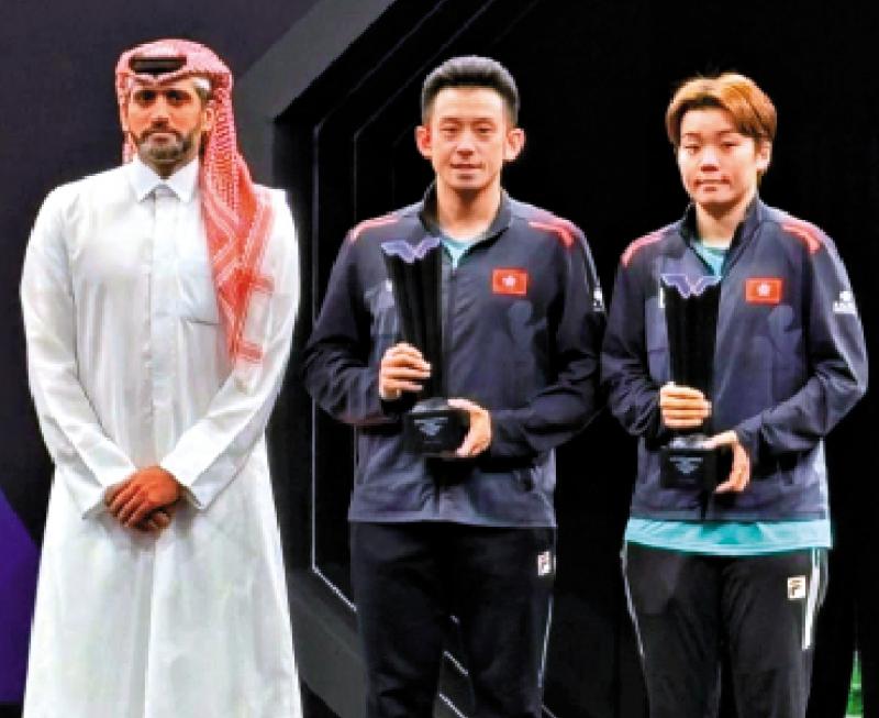 【大公報訊】WTT球星挑戰賽卡塔爾多哈站18日上演的混雙決賽,被列為2號種子的中國香港組合「黃杜配」黃鎮廷/杜凱琹出戰韓國組合朴康賢/金娜英,結果以9:11、11:8、11:9、11:5,局數3:1反勝對手,首次贏得是項賽事多哈站的冠軍。