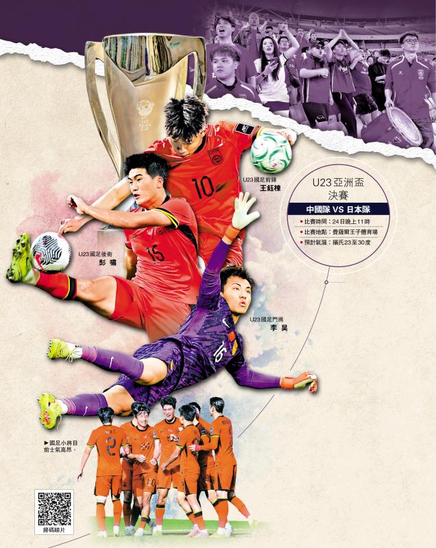 2026年U23亞洲盃決賽將於24日(周六)晚上11時在沙特阿拉伯吉達的費薩爾王子體育場上演終極對決。首次闖入該項賽事決賽的U23中國隊,將面對實力強勁的衛冕冠軍U23日本隊。這場比賽不僅是國家隊男足時隔22年再度躋身洲際大賽決賽的里程碑,更是一場極致的「矛盾大戰」──本屆賽事未失一球、最強防守的國家隊,對戰入球最多、最強攻力的日本隊。\大公報記者 張銳