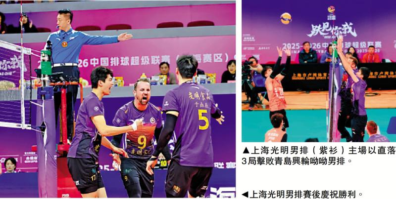 【大公報訊】記者夏微上海報道:22日晚,2025至26中國男子排球超級聯賽常規賽A級第十一輪上海光明男排坐鎮主場,以3:0戰勝青島興輪呦呦男排。