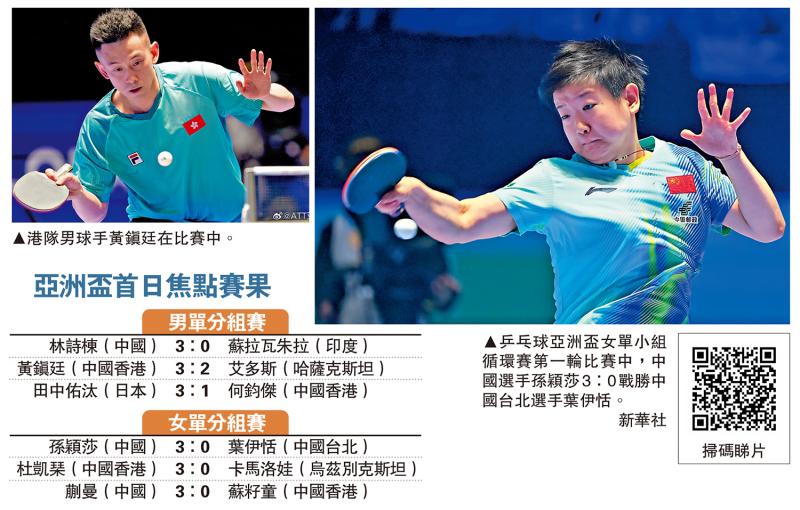 【大公報訊】第35屆乒乓球亞洲盃4日在中國海南省海口市五源河體育館舉行。因傷缺席國際賽場逾50天的世界「一姐」、中國名將孫穎莎康復後首度復出參加女單賽事。她於小組賽第1組上陣,首個對手是中國台北小將葉伊恬,在全場沸騰支持下,她僅用24分鐘14秒便以局數3:0勝出,她於賽後表示,會從小組賽開始,一場一場打,發揮出最好水平。