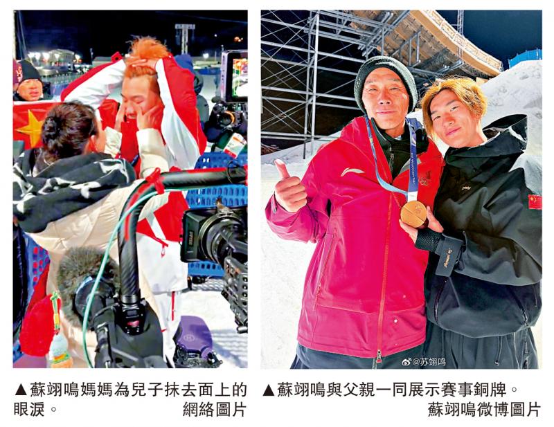 【大公報訊】據新華社報道:頒獎結束後,蘇翊鳴和現場觀賽的父母擁抱了很久。媽媽說,兒子太不容易了。蘇翊鳴說:「在他們面前,我像個沒長大的孩子。」作為冬奧會男子單板滑雪大跳台衛冕冠軍,蘇翊鳴在利維尼奧雪上公園最終摘得銅牌。他不覺得遺憾,反而如釋重負,感嘆終於把衛冕冠軍這個光環「扔」了出去。