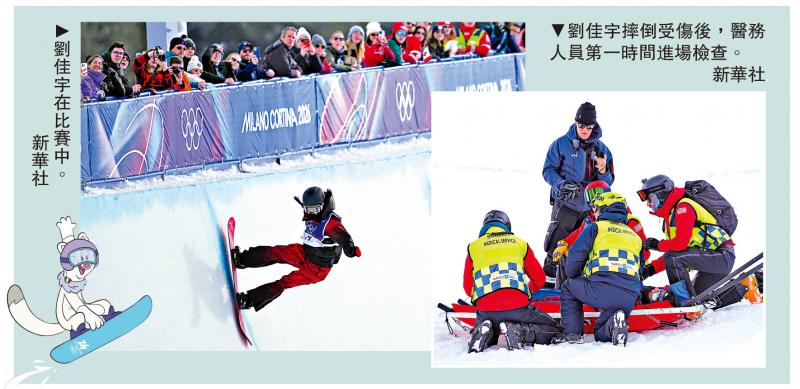 【大公报讯】据新华社报道:11日进行的米兰冬奥会单板滑雪U型场地技巧女子资格赛中,中国选手刘佳宇在第2轮滑行时摔倒,随后被医护人员转运离场并由救护车送往医疗机构进行检查。国家队另外两名选手蔡雪桐、武绍桐顺利跻身决赛。