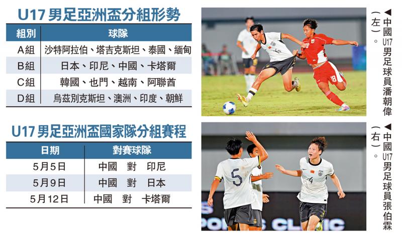 【大公報訊】據新華社報道:12日,在馬來西亞吉隆坡亞洲足協總部舉行的2026年U17男足亞洲盃抽籤儀式中,中國隊與日本、印尼和卡塔爾隊同分入B組。