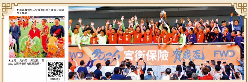 富衛保險賀歲盃足球賽昨天大年初五在香港大球場上演,由中國香港代表隊迎戰韓職聯勁旅FC首爾。在超過一萬四千名球迷熱烈的打氣聲中,港足在法定時間90分鐘與對手踢成1:1平手,最終憑藉互射12碼以5:4擊敗對手,成功捧起賀歲盃,為港足在馬年的征程打響頭炮。\大公報記者 張銳、朱家立(文、圖)