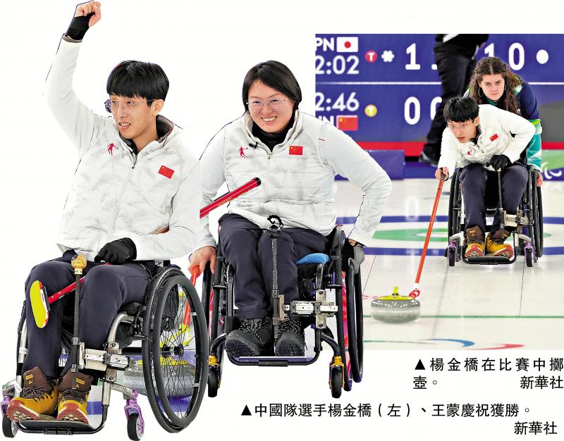 【大公報訊】記者梁潤森報道:今屆冬殘奧開幕式前,國家隊5日出戰冬殘奧會輪椅冰壺混合雙人項目次輪賽事,面對拉脫維亞隊,中國組合王蒙/楊金橋在領先3:0下不斷拉開比分,最終以10:2大勝而回,連同4日勇挫日本隊取得本屆冬殘奧會「開門紅」,中國輪椅冰壺隊已錄得兩連勝。