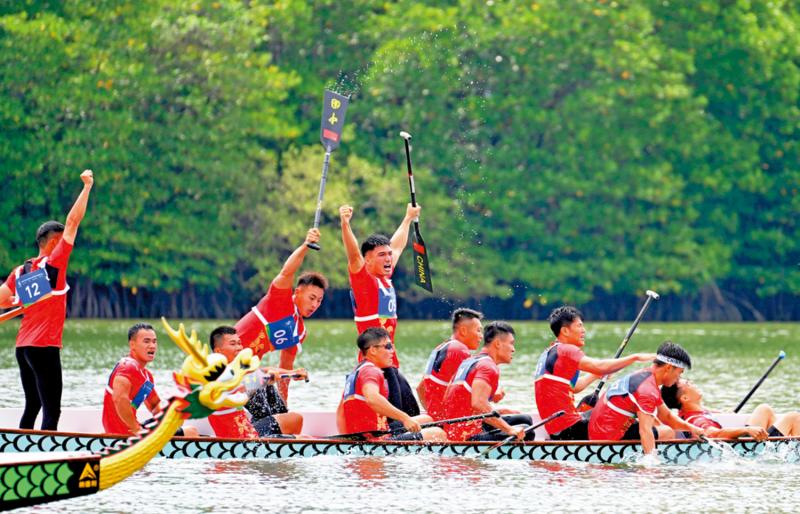 隊員們這樣形容他們的「地位」──鼓手是掌控全隊節奏的「最強大腦」,舵手是穩住龍舟行進方向的「定盤星」,兩人默契配合,成為龍舟競渡的核心靈魂。隨着裁判一聲令下,鼓手身姿矯健,鼓槌如流星般起落,「咚咚咚」的鼓聲似戰鼓催征,激昂的節奏讓人心潮澎湃,而位於船尾的舵手確保龍舟「行穩致遠」。