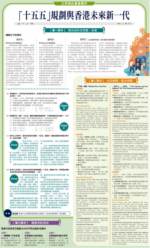 (d)參考以上的資料,試結合香港在全面對接國家「十五五」規劃的方向,說明這些規劃如何影響香港中學生的未來發展機遇。(8分)