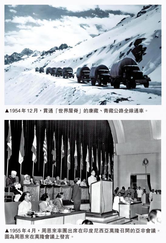 為給國內建設創造和平環境,黨積極開展外交工作。1953年12月,在同印度的談判中,中國首次提出和平共處五項原則,後確立為互相尊重主權和領土完整、互不侵犯、互不干涉內政、平等互利、和平共處。這成為中國外交政策的基石,有力突破了美國的孤立與遏制。