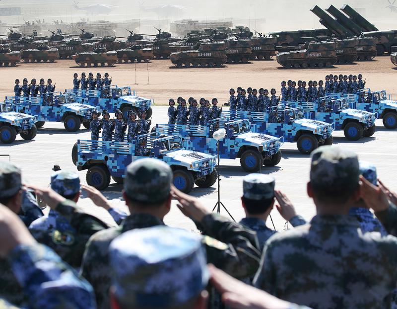 圖:海軍陸戰隊方隊亮相在朱日和舉行的建軍90周年閱兵 新華社