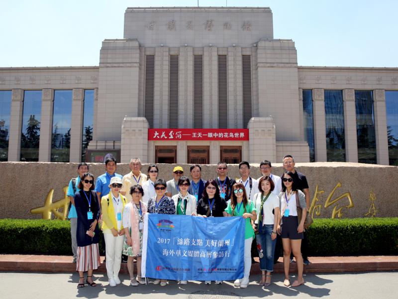 圖:海外華文媒體高層蘭州參訪行活動成員參觀甘肅省博物館並合影 大公報記者肖剛攝