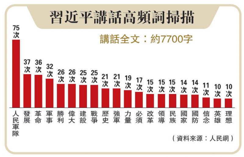 【大公報訊】據中新社報道:中共中央總書記、國家主席、中央軍委主席習近平8月1日出席在人民大會堂舉行的慶祝中國人民解放軍建軍90周年大會時發表重要講話。在近一個小時的講話中,習近平「金句」頻出,談軍史評軍功。