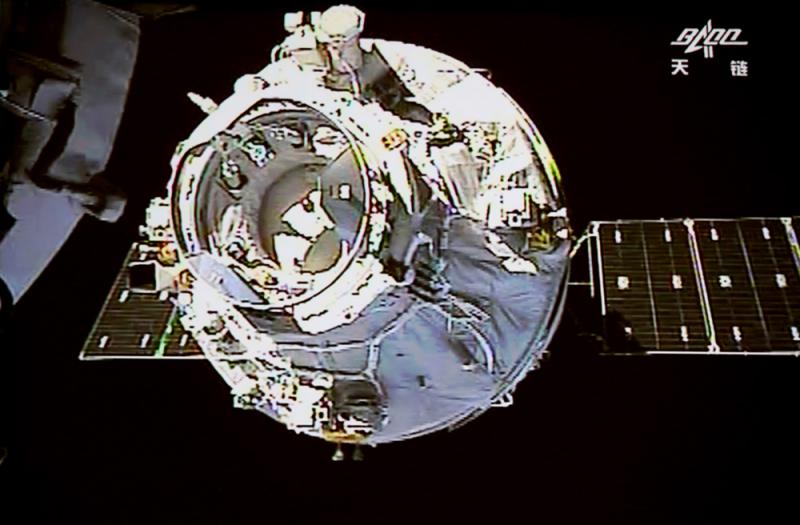 圖:八月一日,天舟一號貨運飛船成功在軌釋放一顆立方星。圖為今年四月天舟一號與天宮二號首次自動交會對接畫面/資料圖片