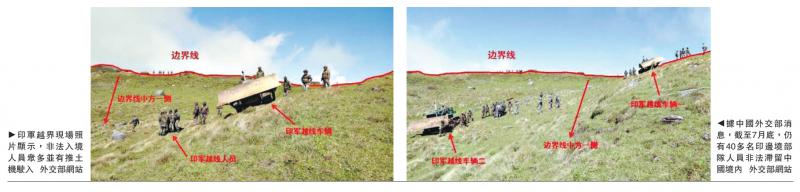 3.事件發生後,中國邊防部隊在現地採取了緊急應對措施。6月19日,中方通過外交途徑緊急向印方提出嚴正交涉,對印方非法越界行為予以強烈抗議和譴責,要求印方立即將越界的印度邊防部隊撤回到邊界線印度一側。中國外交部、國防部、中國駐印度使館在北京和新德里先後多次向印度提出嚴正交涉,強烈要求印度尊重中國的領土主權,立即撤回越界的邊防部隊。中國外交部、國防部發言人多次公開表態,說明事實真相,表明中方立場,並公布了印軍越界的地圖和現場照片。