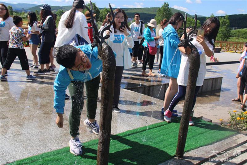 圖:港生們在阿爾山品嘗泉水/大公報實習記者王鳴遠攝