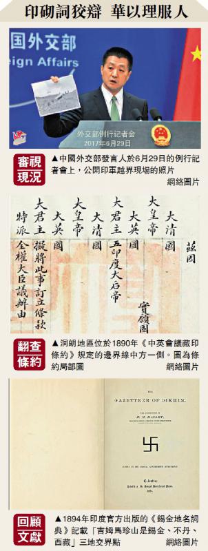【大公報訊】綜合中新社、中通社報道:3日深夜,中國國防部網站刊出國防部新聞發言人任國強就印度邊防部隊非法越界進入中國領土的談話。任國強表示,中國的克制不是沒有底線,中國軍隊將堅定不移地維護自己的領土主權和安全利益。他強烈要求印方立即將越界邊防部隊撤回邊界線印度一側。中國外交部發言人耿爽同日指出,印度邊防部隊仍有40多人和一台推土機在中國領土上非法滯留,其性質都是對中國領土主權的嚴重侵犯。