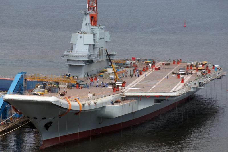 第一艘由中國自主建造的航母同時也是中國擁有的第2艘航母,今年4月26日已在大連下水。胡問鳴介紹說,完成下水後,首艘國產航母依然在船廠內進行後續的設備安裝和測試工作。