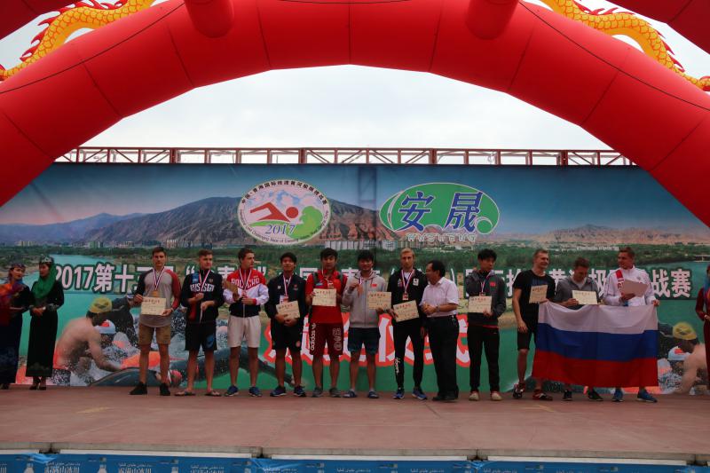 據賽事組委會相關負責人介紹,8月5至6日黃河水面平均溫度為11--13攝氏度左右,平均水速為2m/s,平均氣溫18—28攝氏度,賽事期間平均流量800立方米每秒。無論水溫、氣溫,還是流速,都較為適宜開展「搶渡」運動。經過兩天激烈的角逐,第十三屆搶渡黃河極限挑戰賽安全、精彩、順利完賽。最終,來自俄羅斯隊的查里多夫•阿利克斯奪得男子A組冠軍,青海循化隊的曲敬宇、尹默林及東莞善泳者隊的陳蘇偉分獲男子B組、C組、D組冠軍。女子A組俄羅斯隊瓦多拉若斯卡尤利婭獲得冠軍,武漢水線隊蘇天賞獲得B組冠軍,青海循化隊邵飛獲得c組冠軍,青海循化隊邵文芳獲得D組冠軍,在團體成績方面武漢水線隊以306分的高分獲得總成績第一。