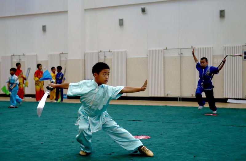 崆峒(國際)武術節比賽現場,武林小將一招一式有模有樣。肖剛 攝